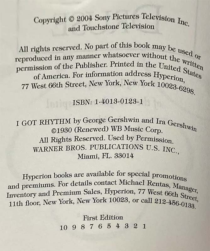 - Unsigned Trade Edition of unknown copies.On the copyright page you should see the numbers 10 9 8 7 6 5 4 3 2 1 - Issue price $22.95
