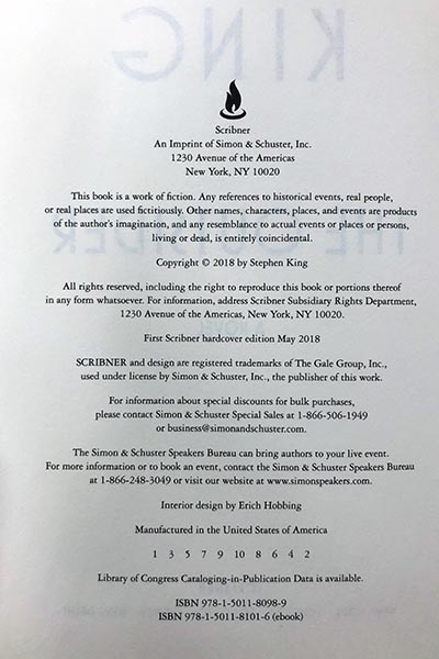 Interestingly the online forums mention that folks are seeing even 2nd and 3rd printings within a week of the release date, indicating the 1st edition print run may be smaller than typical for a King book. I don't expect it's small enough to raise the price on the secondary market beyond the issue price of $30 anytime soon as is/was available for around $18 at most major bookstores. But something to watch out for if you haven't picked up a copy yet, and maybe get a mylar cover over the DJ sooner than usual.