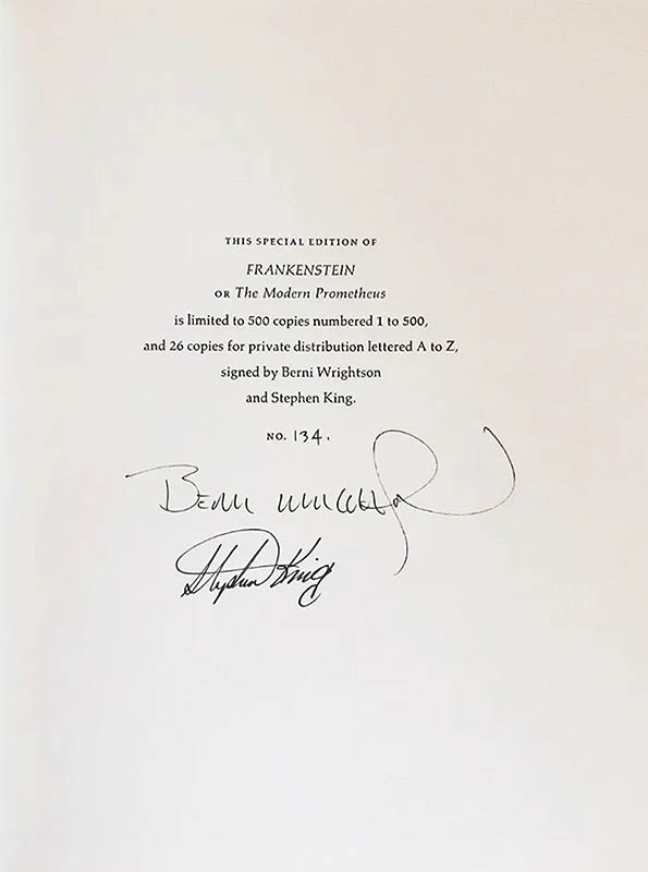 • Limited Edition: 500 numbered copies, hardback, with slipcase and glassine sheet protecting the book Signed by Stephen King and Berni Wrightson. Issue Price = $???