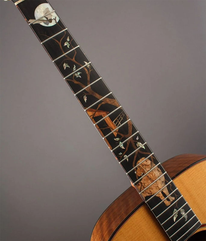 In the movie 'Cujo'', there is a tree featured in the film that Cujo lurks around nearby. In 1997 a bad storm moved thru the area and this tree was struck by lightning and damaged. The property owner called a local tree removal service to have the tree removed. The man who arrived for the job was training on the side to become a Luther (guitar builder). He knew this was where Cujo was filmed and upon viewing the tree (a black walnut tree), he saw that the wood grain pattern was beautiful and perfect for guitar wood. Inspiration struck him and he decided to reach out to Bob Taylor of Taylor guitars. He explained to Bob the significance of the tree and the intricate wood grain and suggested that a special batch of guitars could be made with this tree. Bob agreed entirely! He paid for the tree to he brought to the factory. They produced 250 acoustic guitars with this tree. They featured mother of pearl inlays depicting the story of Cujo. Stephen King was contacted by Taylor to inform him of the project. As an avid guitar player himself, King fully endorsed the product and even agreed to sign the manufacture tag that resides inside the sound hole of each guitar. Stephen King was given #1 of 250, and Bob Taylor took #2 (reddit)
