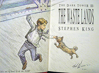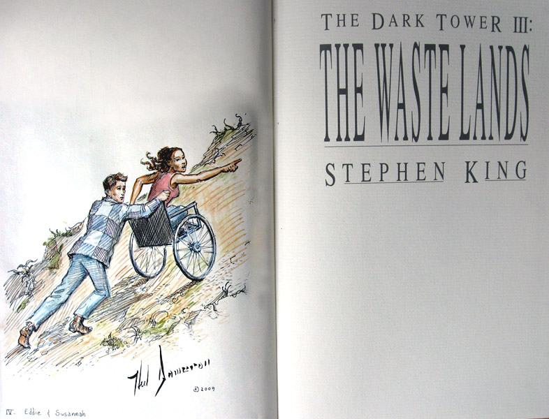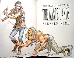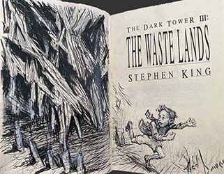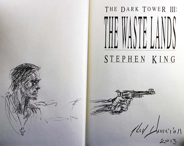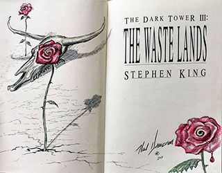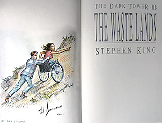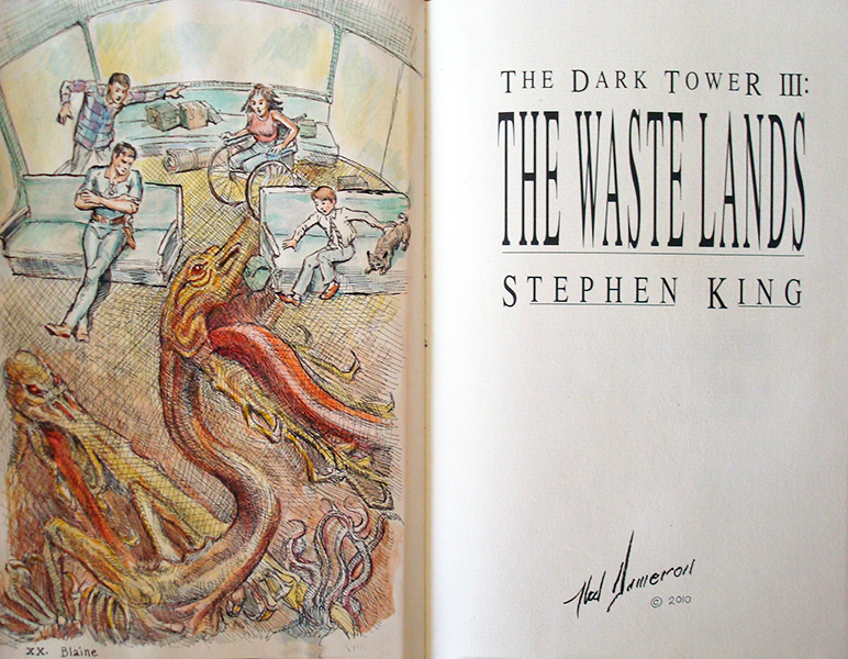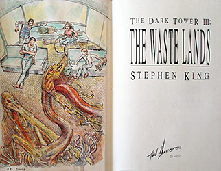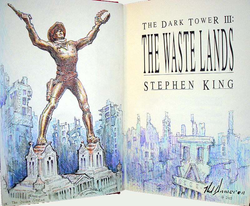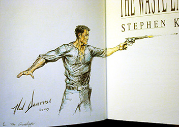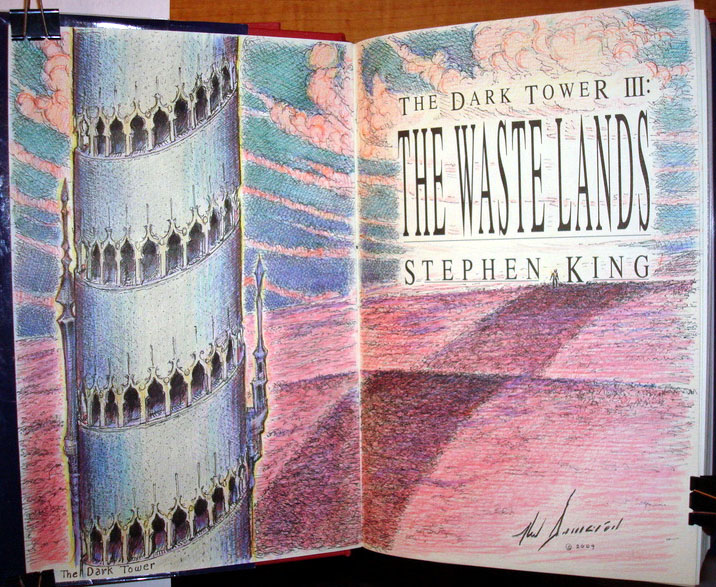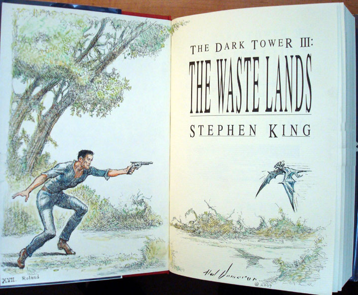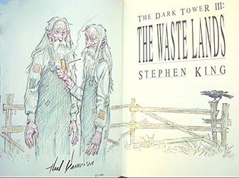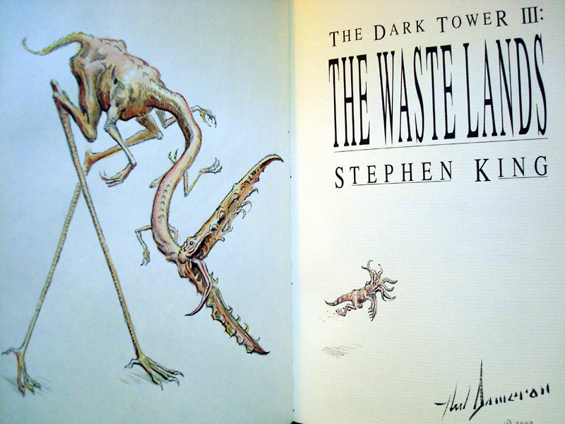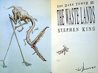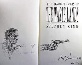 In July of 2009, artist Ned Dameron announced he would be doing remarques in twenty-one copies of the Grant first edition of The Waste Lands. Over a period of about 18 months, Dameron (who produced the original illustrations for the book) released these for sale via eBay.  Each remarque was numbered and signed by the artist.