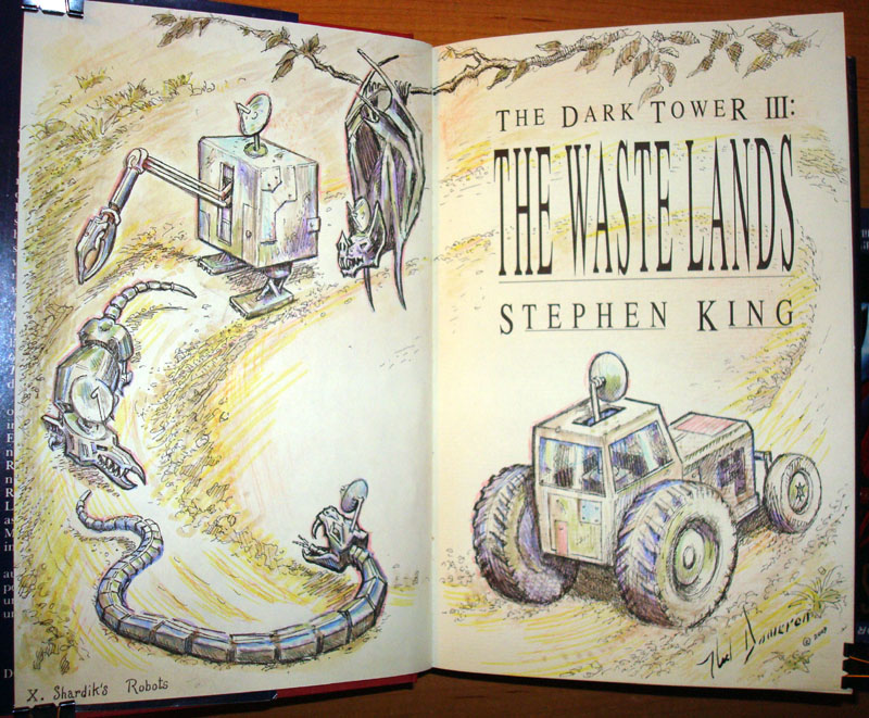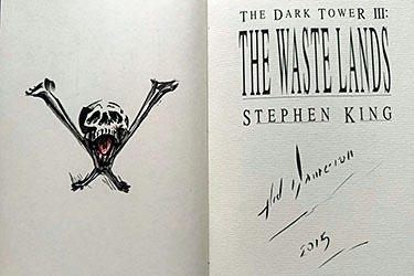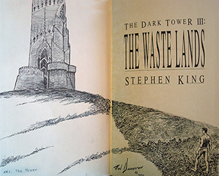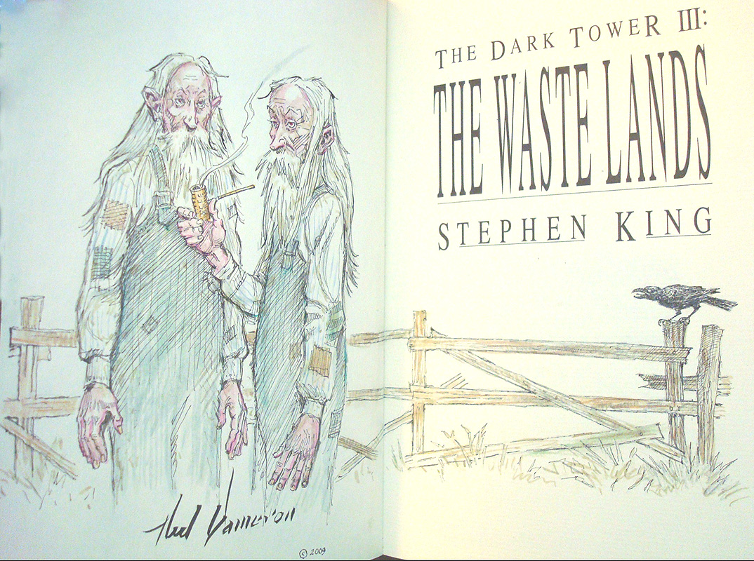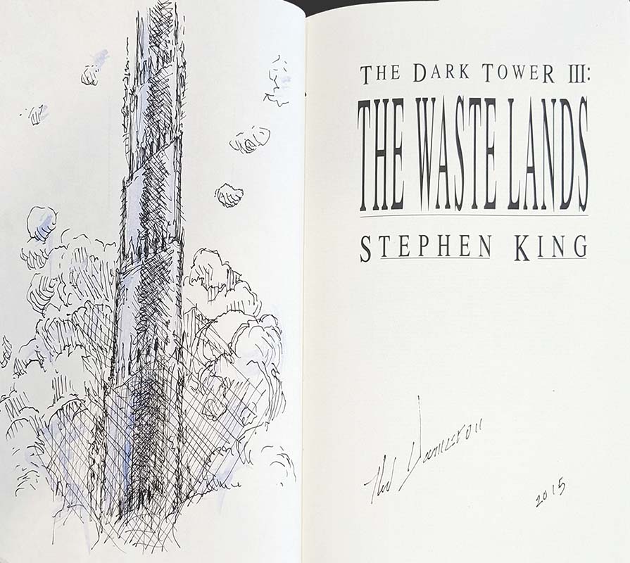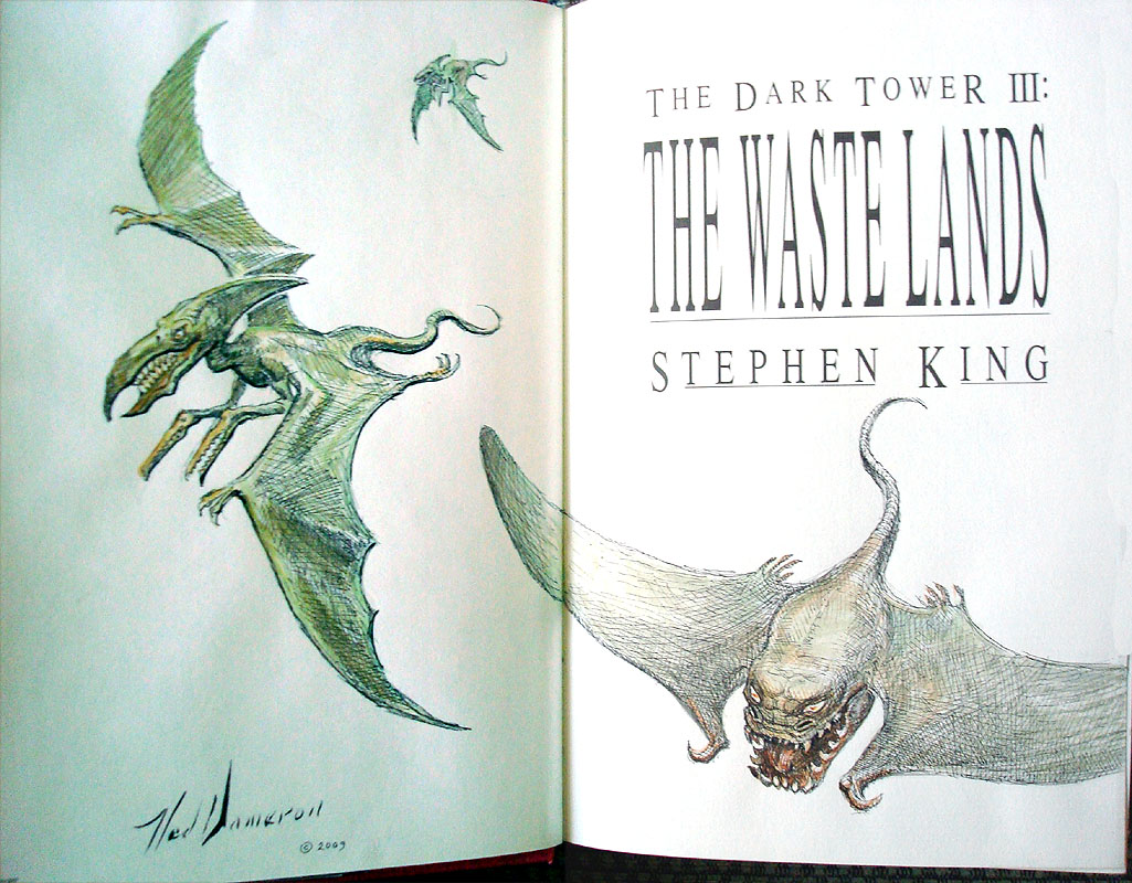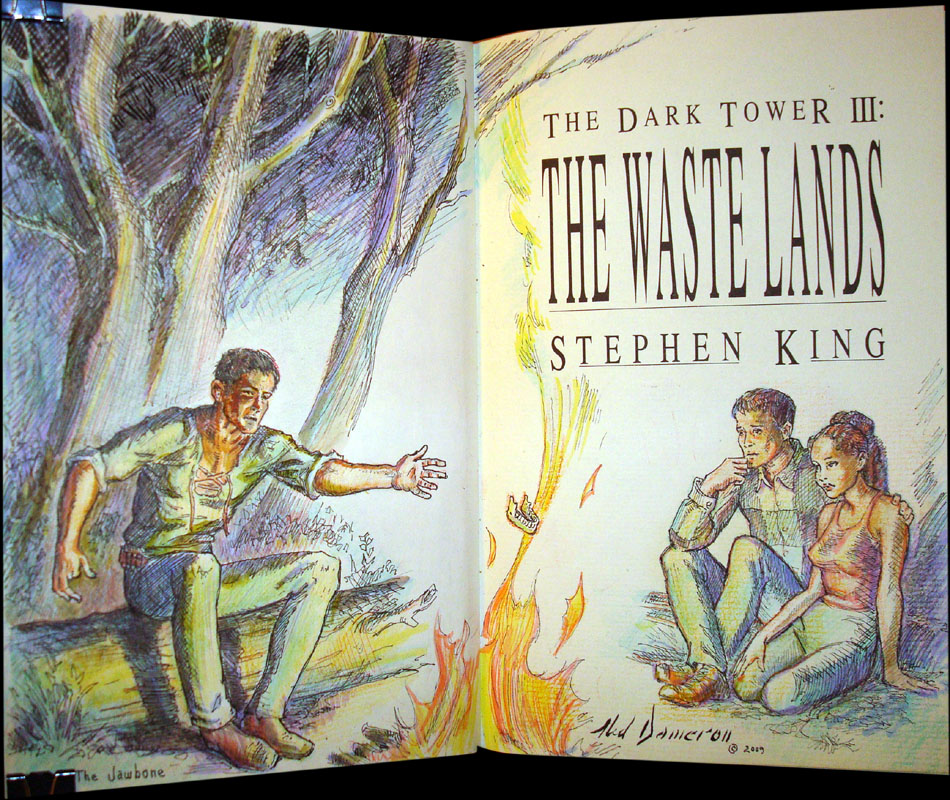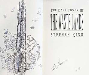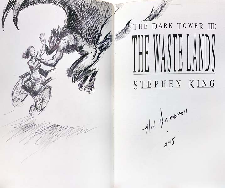 In July of 2009, artist Ned Dameron announced he would be doing remarques in twenty-one copies of the Grant first edition of The Waste Lands. Over a period of about 18 months, Dameron (who produced the original illustrations for the book) released these for sale via eBay.  Each remarque was numbered and signed by the artist.