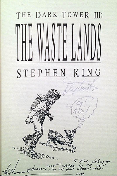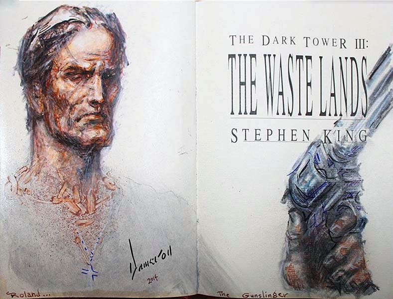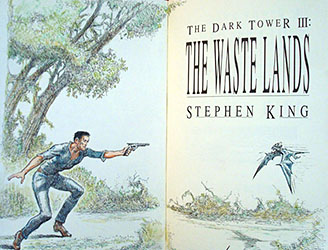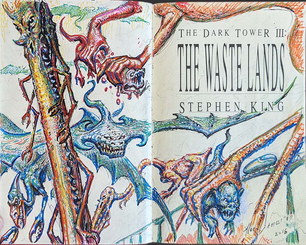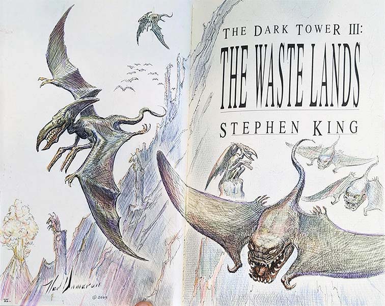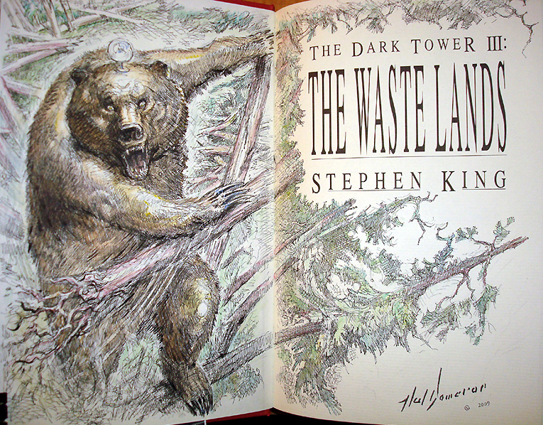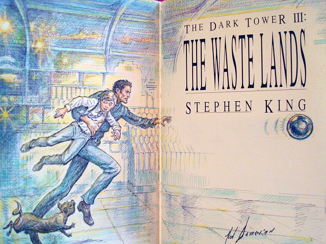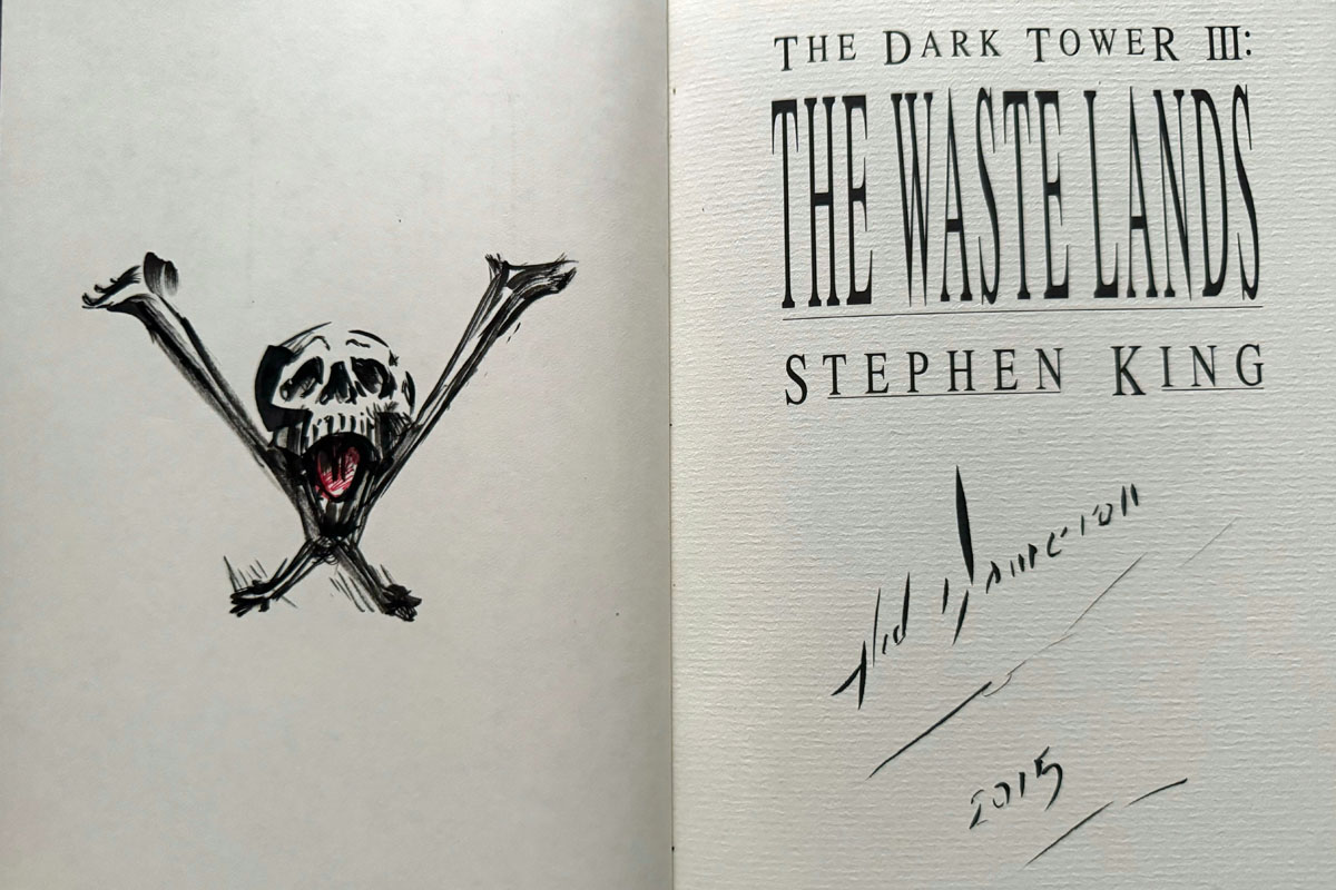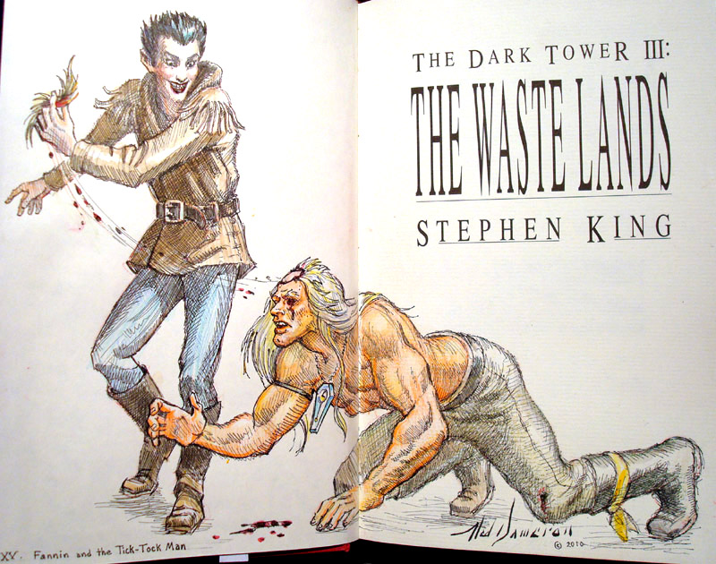 In July of 2009, artist Ned Dameron announced he would be doing remarques in twenty-one copies of the Grant first edition of The Waste Lands. Over a period of about 18 months, Dameron (who produced the original illustrations for the book) released these for sale via eBay.  Each remarque was numbered and signed by the artist.